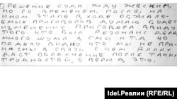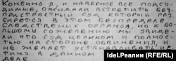 — С первых строк своего письма хочу извиниться, что не ответил вам раньше, но поймите меня правильно — было не так много времени — писанины по уголовному делу много. Да, чтобы было понятно, отвечает на ваше письмо Сабиров Марат — так называемый один из лидеров "Чистопольского джамаата", как указала сторона обвинения.