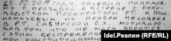 15 декабря 2014 года я объявил голодовку с просьбой о встрече с руководством Прокуратуры РТ и уполномоченным по правам человека в РТ [Сарией] Сабурской, мотивировав это тем, что не могу бороться с этим беспределом, нарушаются мои конституционные права.