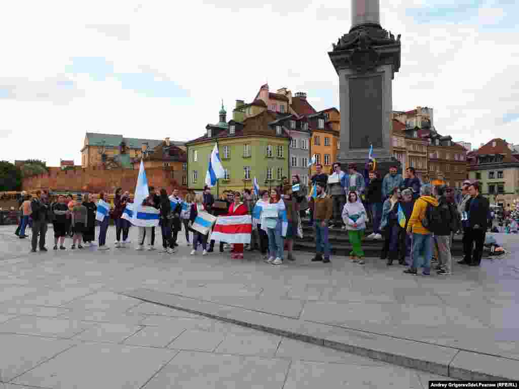 Представители российской диаспоры в Варшаве собрались 8 мая на Замковой площади, чтобы почтить память погибших в борьбе за демократию в РФ и павших на войне в Украине. Акция, по словам организаторов, была проведена "в противовес путинскому параду".